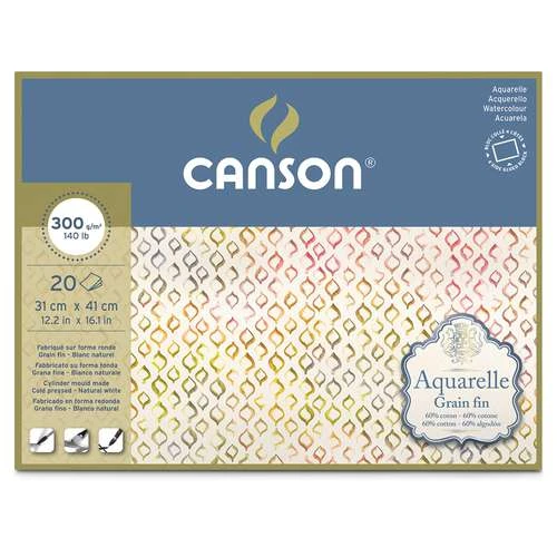Canson Aquarelle Watercolour Paper is traditionally produced on a cylinder mould machine. It consists of 60% cotton fibres. Due to its alkaline buffer, it has excellent durability.