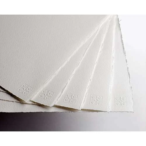 The paper is manufactured to high archival standards. Each sheet is buffered with calcium carbonate to protect the finished work from discolouration from acids found in the air. Saunders Waterford watercolour paper has a distinctive, random texture. The surface is treated with gelatine, which makes it extremely durable and scratch-resistant.