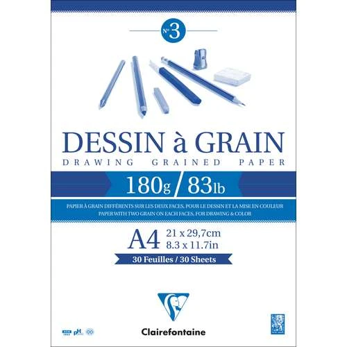 Clairefontaine Dessin à Grain Drawing Pads contain 30 sheets of bright white 180gsm drawing paper which is ideal for pencil, pastel, ink and charcoal, and is also suitable for all wet techniques.