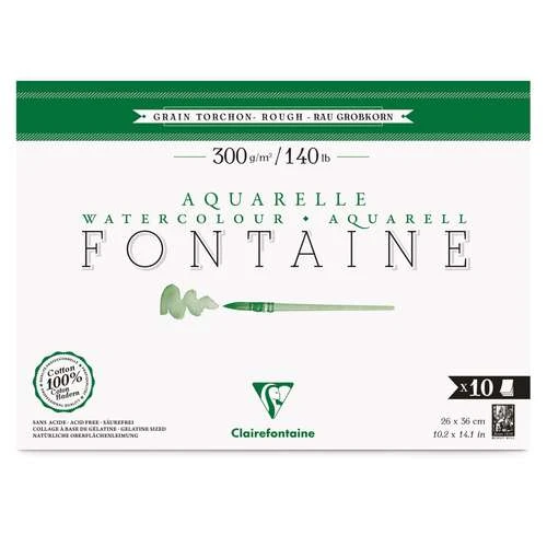 Clairefontaine Fontaine Extra Rough Watercolour Paper is available as blocks, pads, individual sheets (minimum order quantity 3 sheets), or packs of 5 sheets.