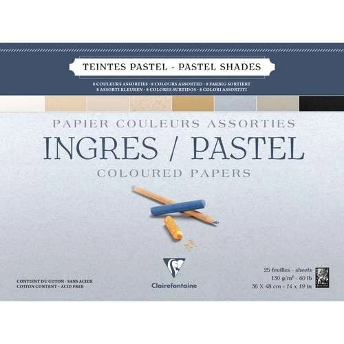 Clairefontaine Ingres Pastel Shades Pastel Pad contains 25 sheets of 130gsm paper which is suitable for pencil, pastel, sanguine and charcoal, as well as for framing, book binding and scrapbooking. These pads are tape bound on the top edge.