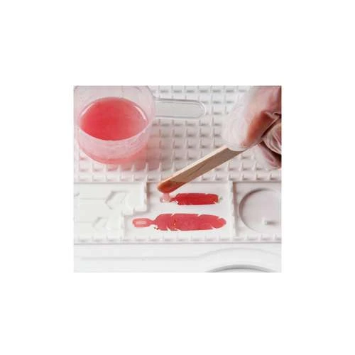 Thanks to the nubs, excess resin can drip off without sticking to the object. This produces high-gloss surfaces with a curved edge. The practical slots serve as a ring holder for rings. The shaped edges allow multiple Cléopâtre Work Pad Résin’pads to be joined together. During filling the resin is collected safely in the gutter. Dried resin is easy to remove from the Cléopâtre Work Pad Résin’pad.