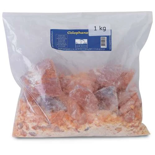 The addition of wax (proportion: 20-30%) makes the resin more tacky if desired. Diluting with 20 – 30% alcohol gives the resin a very glossy finish. Esprit Composite Rosin is sold in 1kg bags.