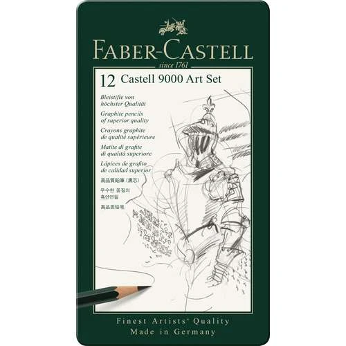 Faber-Castell 9000 Pencil Sets are available in 2 different sets of 12 pencils, presented in metal tins:
