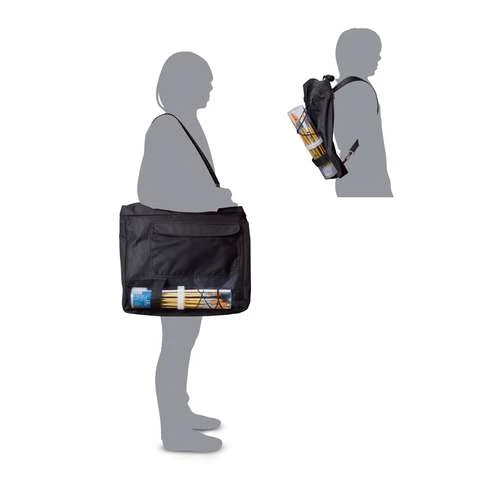 If the backpack function is not needed, the shoulder straps can be stowed in a small compartment on the back of the bag without any problem. The black Gerstaecker Carry Bag has zips on the main and back pockets, and velcro on the outside pocket. The carry handle is
