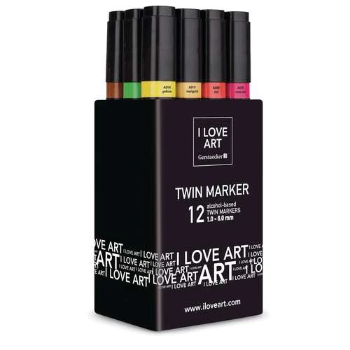 These I Love Art Twin Marker Sets contain 12 marker pens with 2 different tips: a 1mm fine point and a 2-6mm chisel tip. They are ideal for sketching, drawing and illustration.