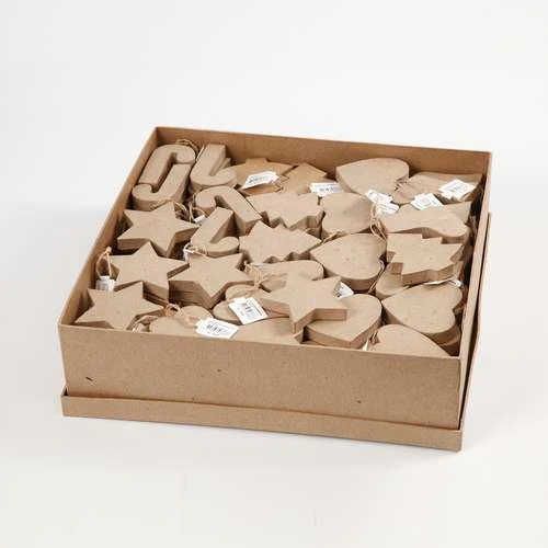 The Papier-Mâché Christmas Gift Tags are available in 6 different designs and are delivered in a large papier-mâché box containing 174 items.