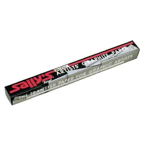 Sally’s Graphite Transfer Paper is sold in packs of 12 sheets. Sheets measure 45.7 cm x 60.9 cm.
