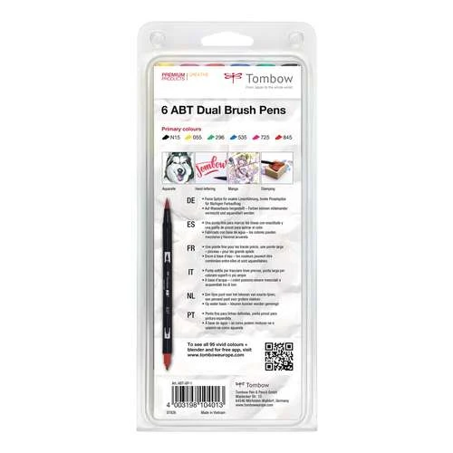 Tombow ABT Dual 6 Brush Pen Sets contain 6 watercolour ink markers with two different fibre tips. These markers are ideal for urban art, card design, sketching, drawing, manga, illustration etc.