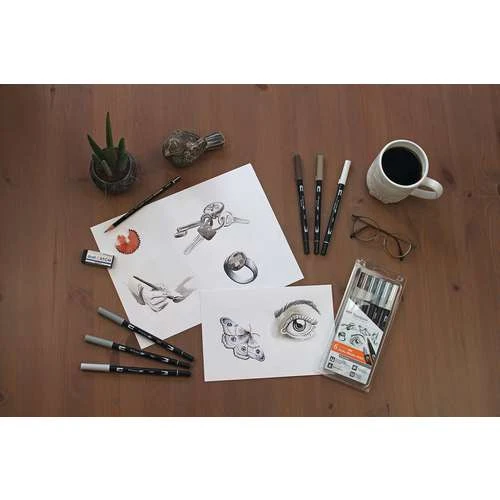 Tombow ABT Dual Brush Pen Set, Grey Colours, 6 pens